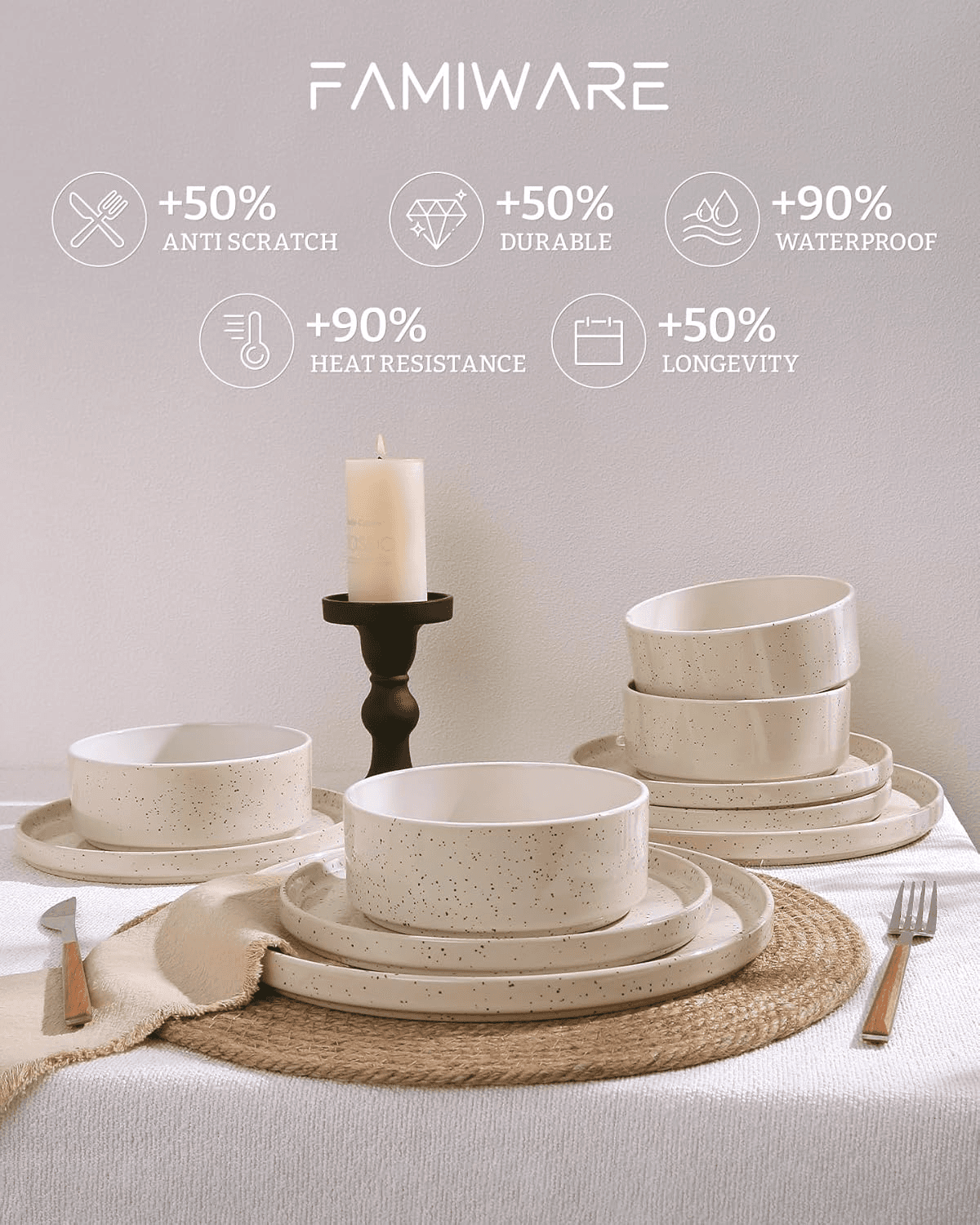 Plates and Bowls Sets, 12 Pieces Dinnerware Sets